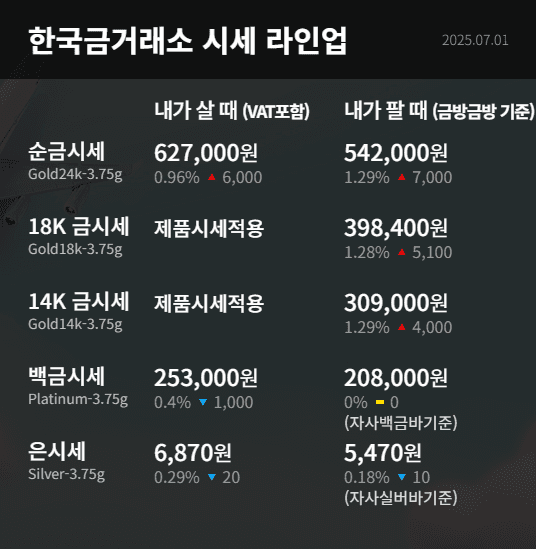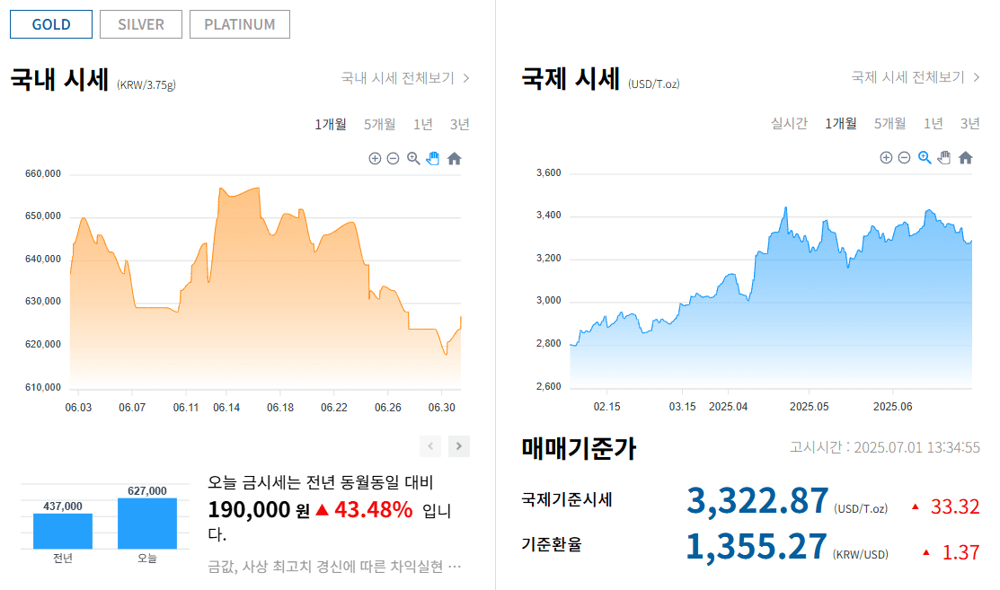 한국 금 거래소 시세정보 (7월1일)
